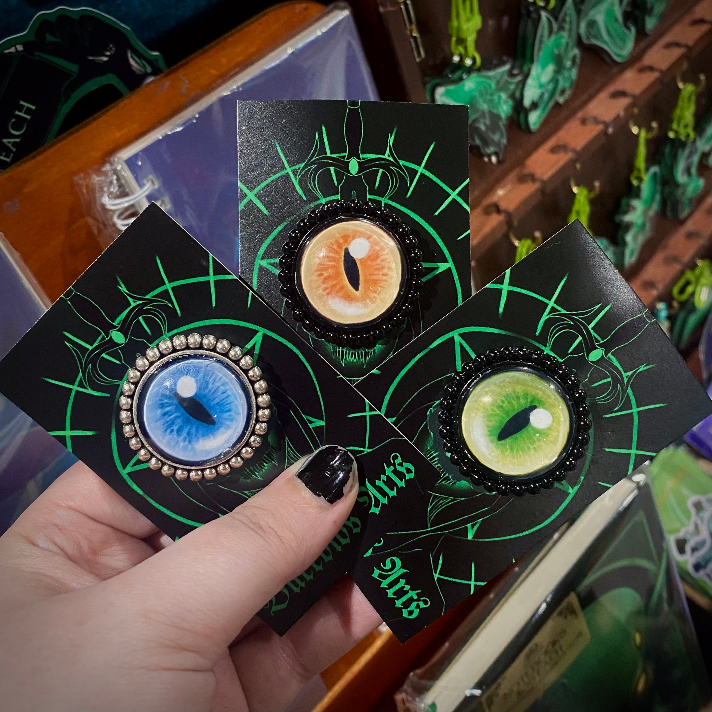 Our accessories are unique, with a selection of handmade oddities including hand-sculpted organs as wall decor, and lover’s eye jewellery fashioned into earrings, brooches, and keychains.