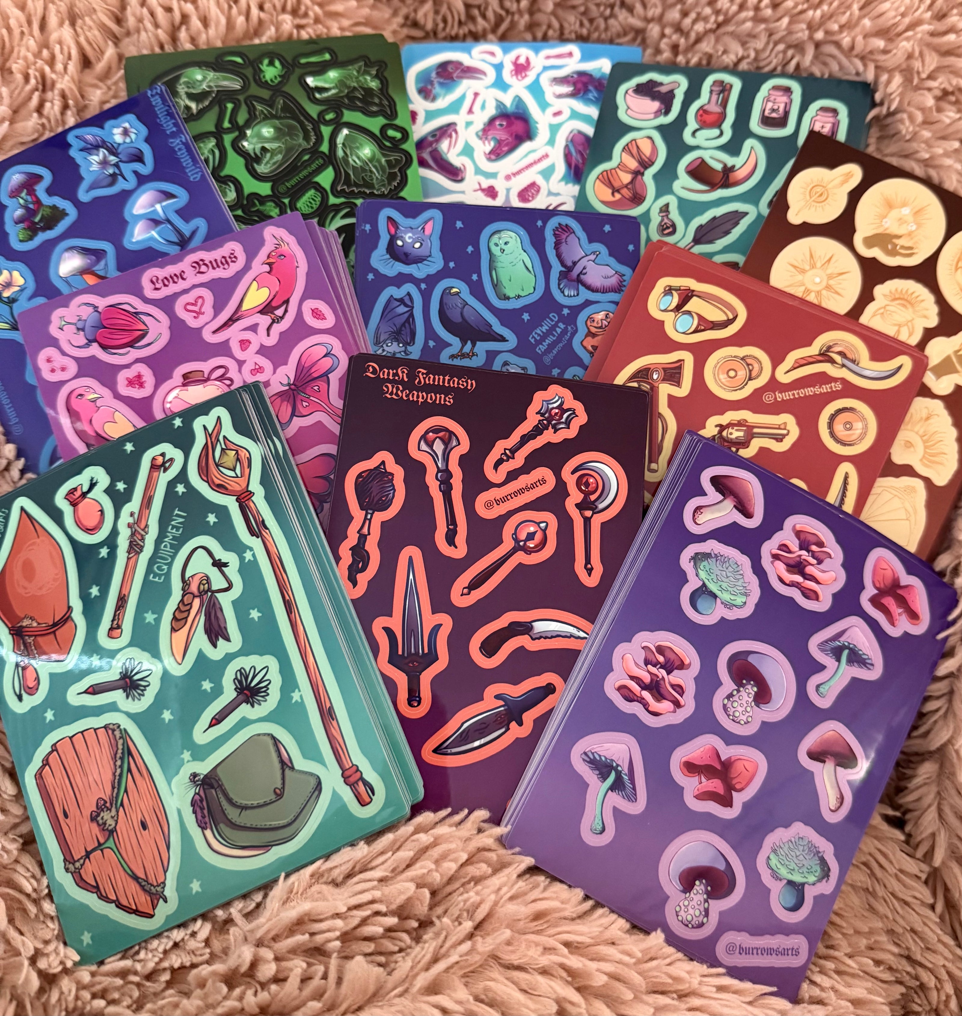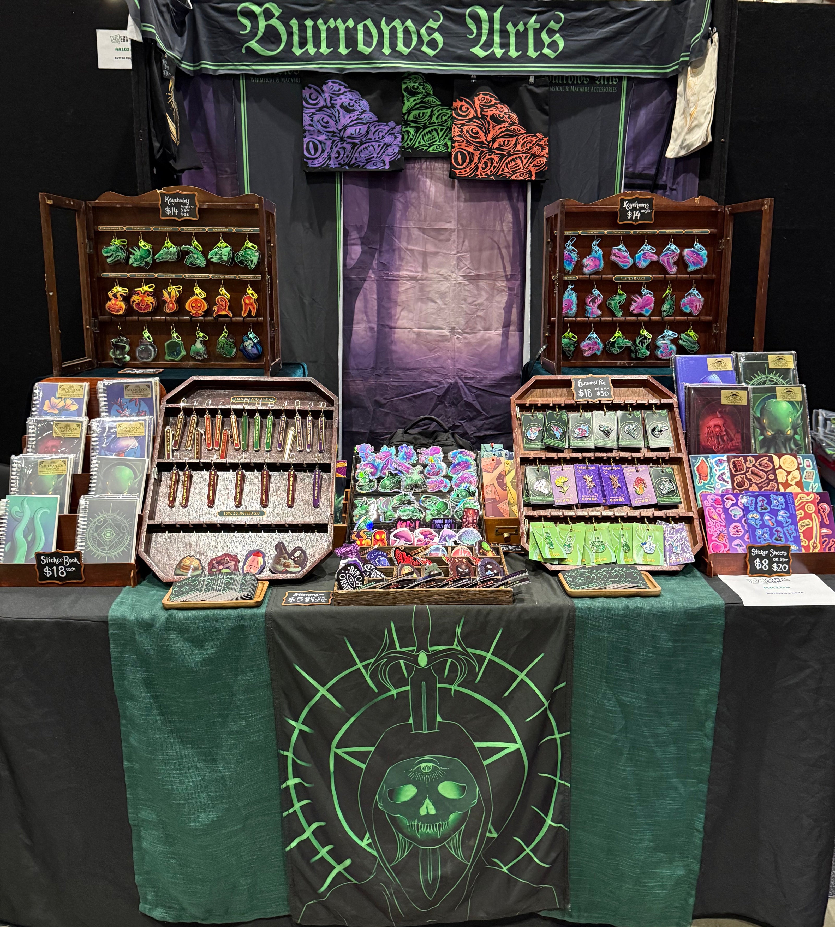 Burrows Arts is a macabre fantasy themed stationery and accessories stall. We sell items that feature original illustrations inspired by human, dinosaur and cryptid anatomy.