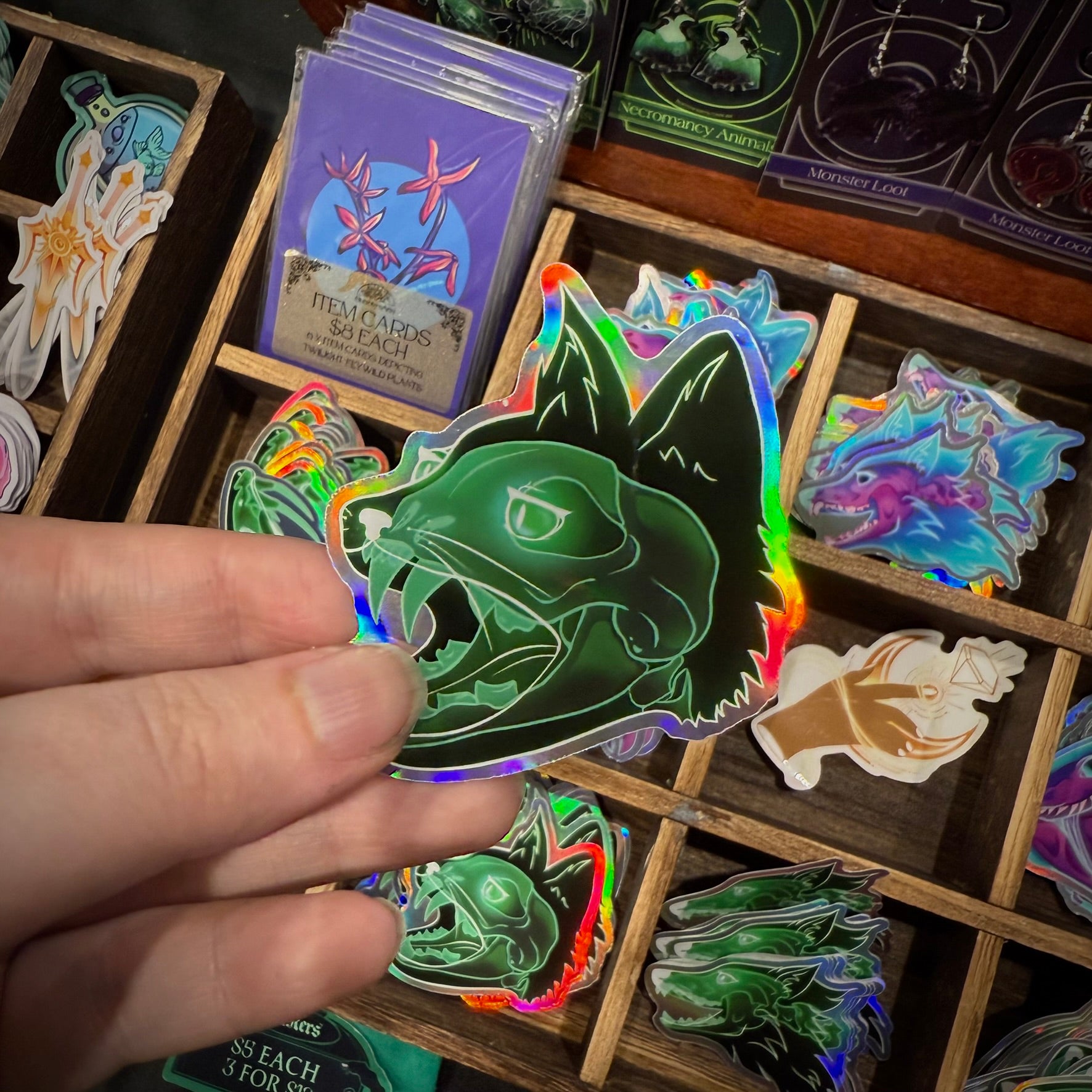 Peel back the layers, and admire the anatomy of your favourite creatures. Burrows Arts’ Necromancy range features animals, dinosaurs, and even cryptids. The range includes keychains and charms, earrings, stickers, and enamel pins.